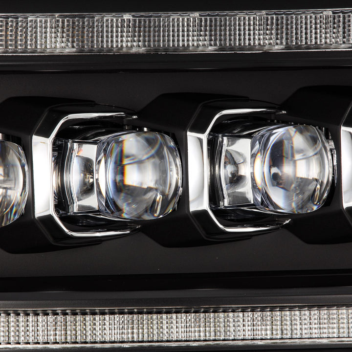The 4th gen Ram MKII NOVA-series projector headlights draw inspiration from the 5th generation Ram 2500 trucks and are tailored for the 4th generation Ram. These headlights feature white DRL and sequential turn signal lights at the top and middle DRL bar, with the bottom section equipped with amber LED sequential turn signal lights. Additionally, they include an activation light sequence that activates when you unlock your vehicle. The distinctive NOVA LED design includes quad projectors, with the inner projector dedicated to high beam functionality and the three outer projectors serving as low beams. These headlights boast high-power LEDs delivering a 6000K light output for exceptional projection. Elevate your Ram's appearance and functionality with these 4th gen Ram MKII NOVA-series projector headlights, designed to deliver optimal performance and style on the road.