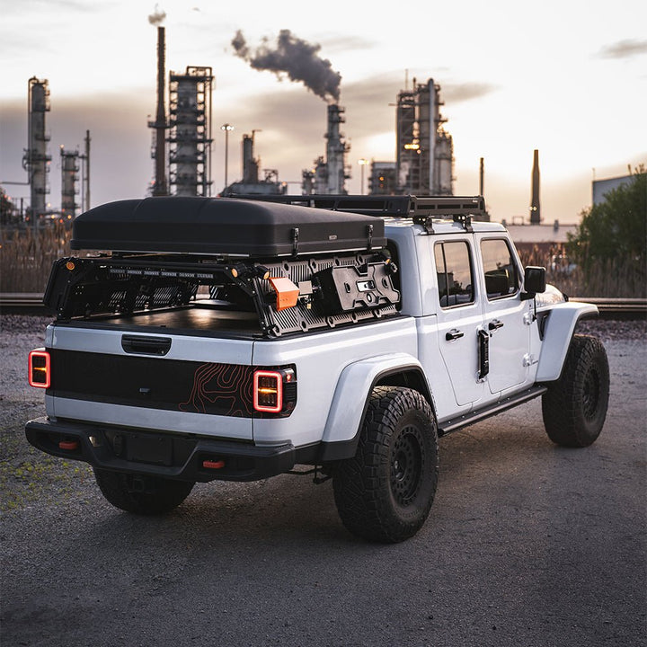 Introducing the Jeep Gladiator JT NOVA-series Prismatic LED tail lights, our pioneering entry into NOVA-Series Prismatic tail lights with prism optics technology. These Jeep Gladiator JT NOVA-series Prismatic LED tail lights showcase 8 trapezoidal prisms. The top 4 prisms utilize red LEDs for braking, while the bottom 4 prisms combine red brake LEDs with white reverse LEDs for enhanced visibility. Nestled between these prisms is a diffuser lens light tube, emitting an amber LED sequential turn signal. A standout LED tube surrounds the tail lights, creating a 3D effect and illuminating as a parking light. Unique to AlphaRex, these Jeep Gladiator JT NOVA-series Prismatic LED tail lights feature our signature activation light sequence when the parking lights are turned on, adding a distinctive touch to your Gladiator JT. Upgrade to our Jeep Gladiator JT NOVA-series Prismatic LED tail lights for a blend of sophistication and functionality.