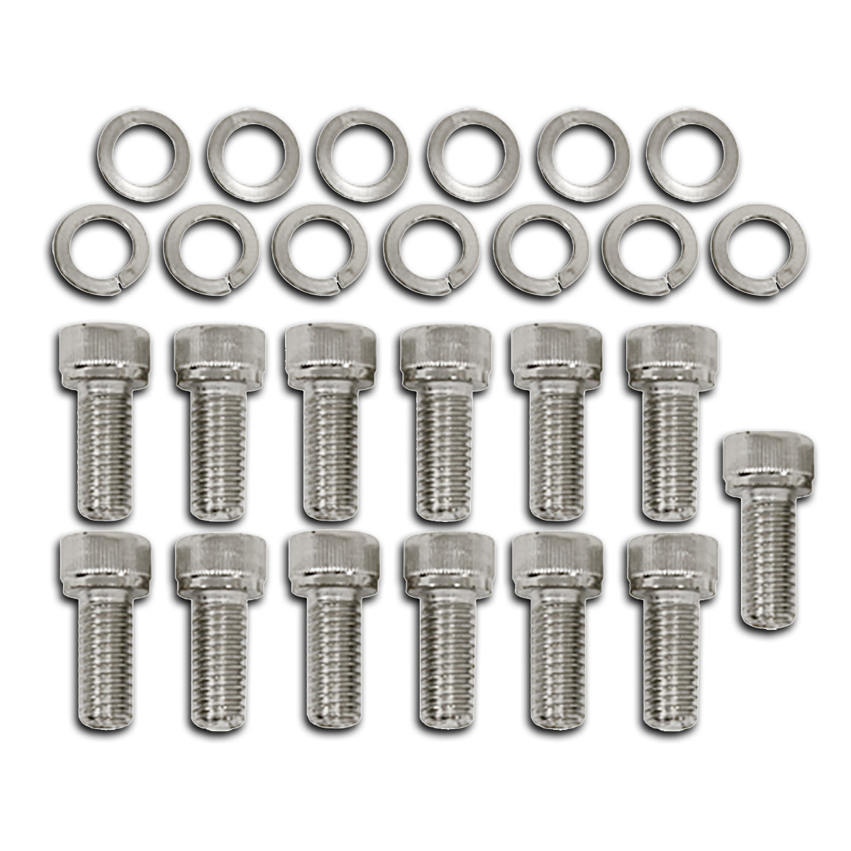 Transmission pan allen head bolt kit designed for use with GM TH-350 TH-400 transmission pans. Includes 13 steel bolts and 13 washers.