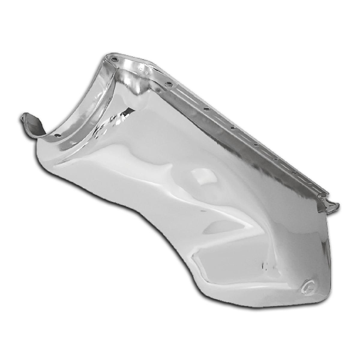 Chevy big block stock capacity chrome oil pan fits 1965-1990 V8 396-402-427-454 engines. 4 quart (stock) capacity. The dipstick is on the passenger side. You can use the original oil pump pickup. This oil pan does not fit Gen V motors with a one-piece rear main seal or 1962-67 Chevy II Chevelle's with steering behind the crossmember. DOES NOT COME WITH OIL PUMP PICK UP.
